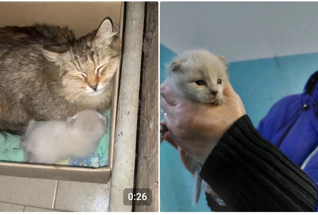 Кошечка с котёнком 2 недели
