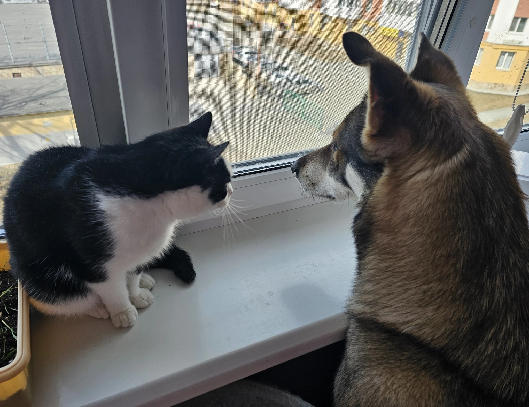 Да, списывались несколько раз с хозяйкой ее- Зайка очень даже осваивается на новом месте) очень мирно и спокойно с новым другом-котом