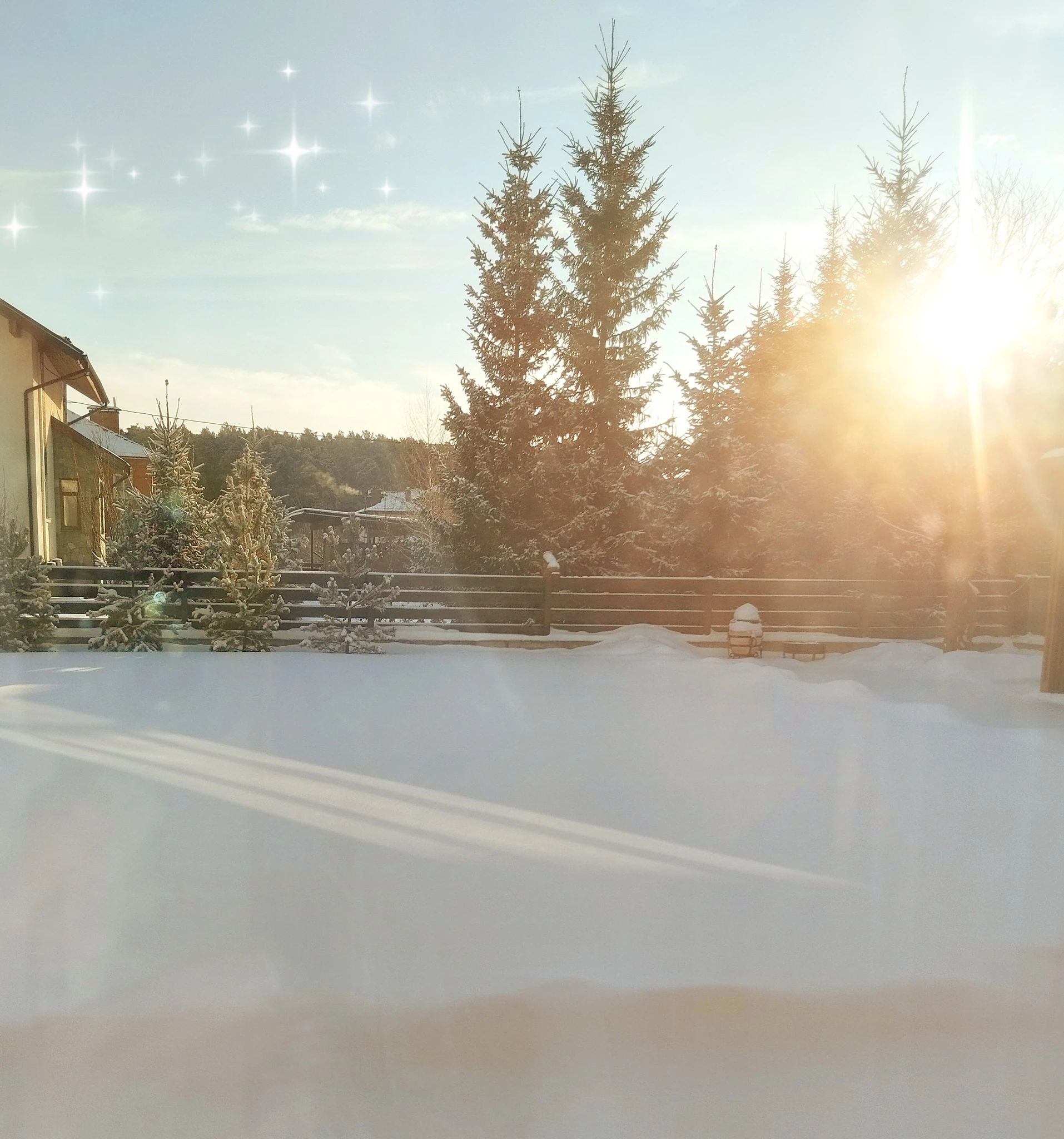 Мы купили участок с огромными елями, туя и и соснами. Красота неописуемая.