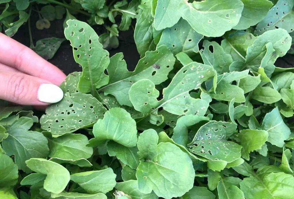 У меня руккола растет только в теплице. В грунте тоже блошка сжирает. Зато в теплице колосится на ура.