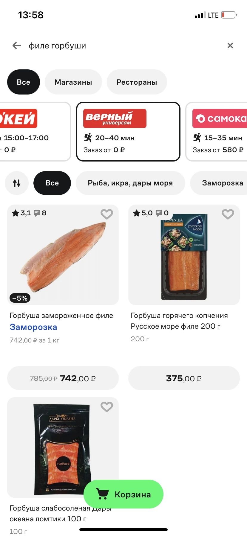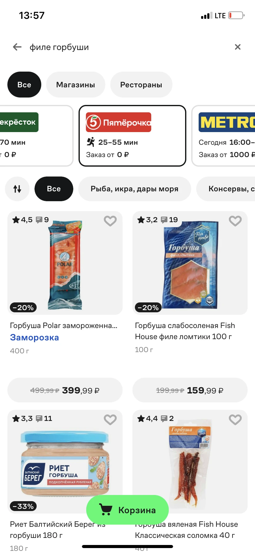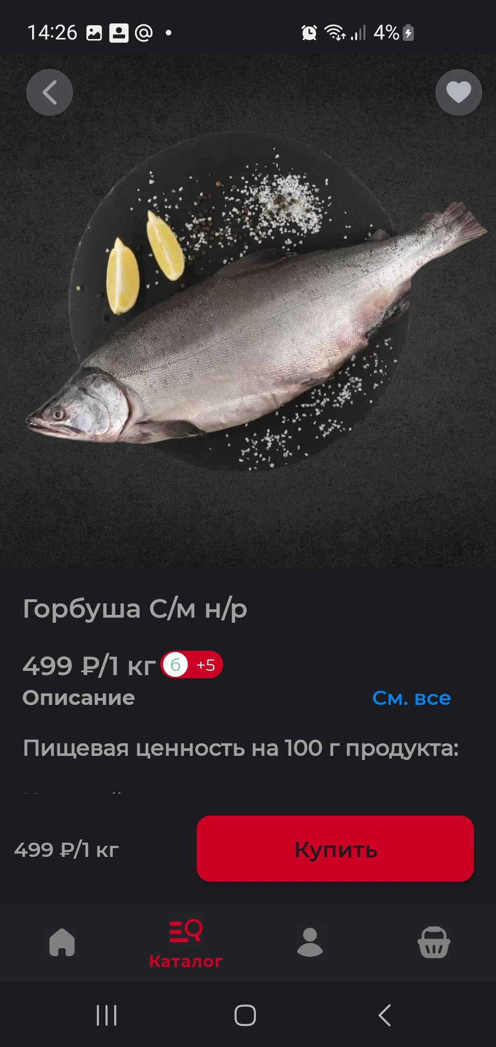 Бегите, вчера была нарасхват. Я три рыбины купила, две засолила, а филе горбуши на период акции 499