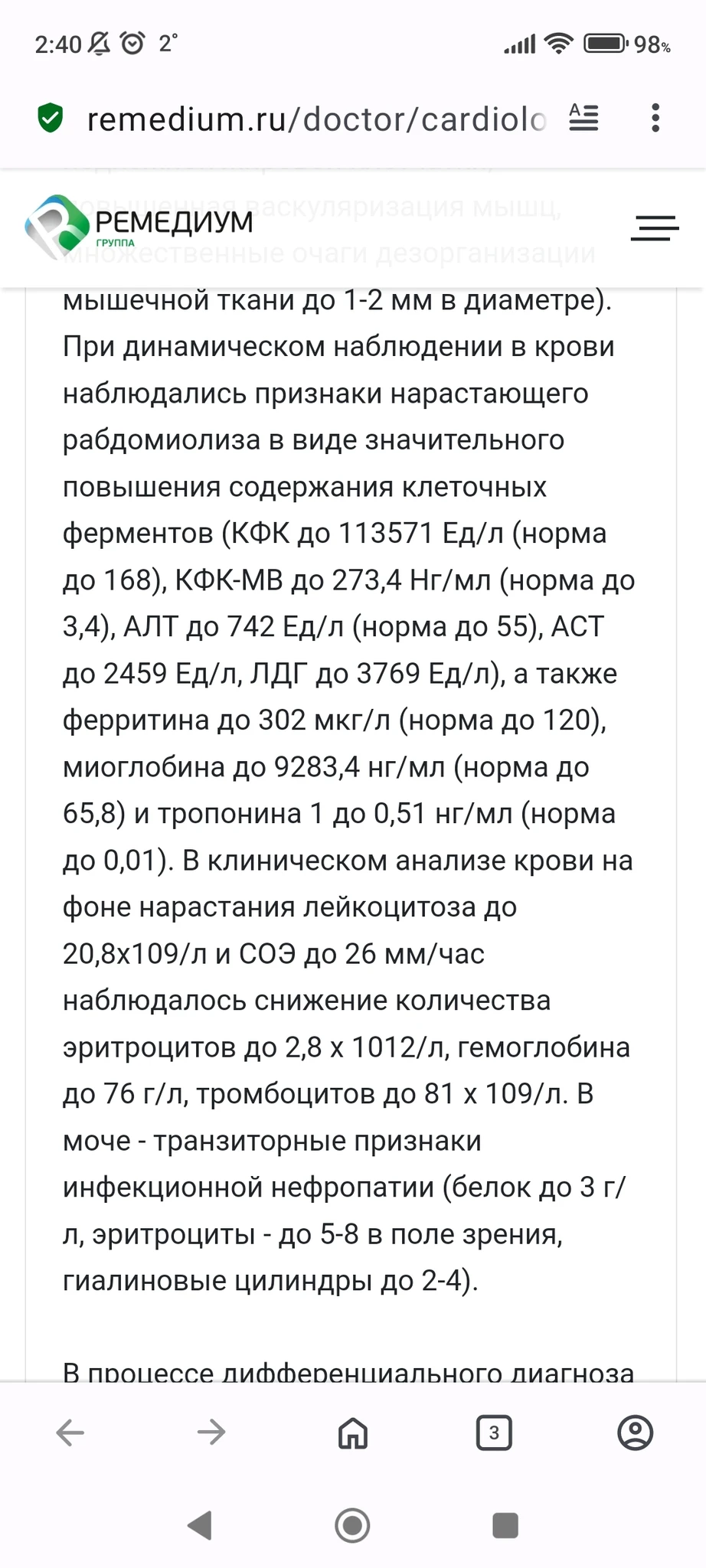 Тут про повышение ферритина есть