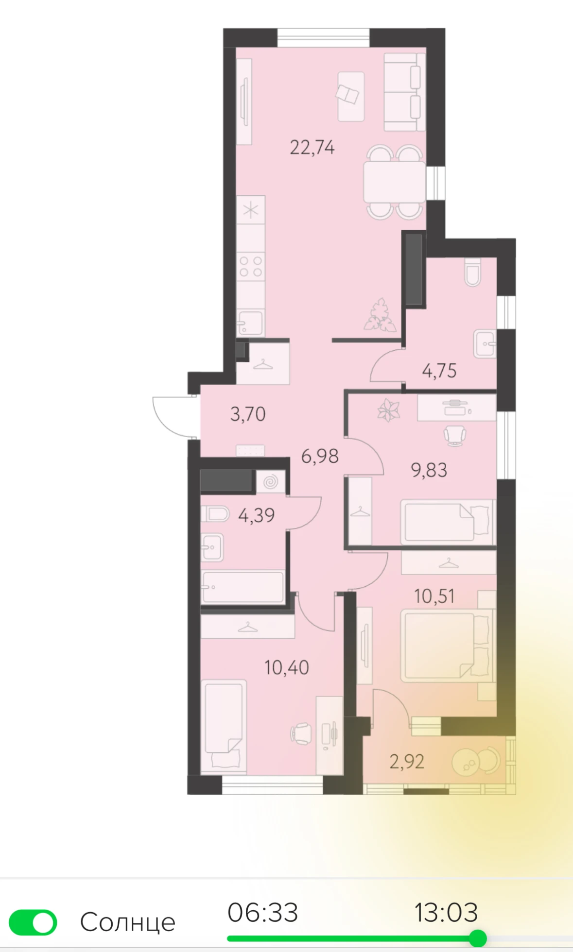 У нас один, это такая печаль, но у нас двушка.