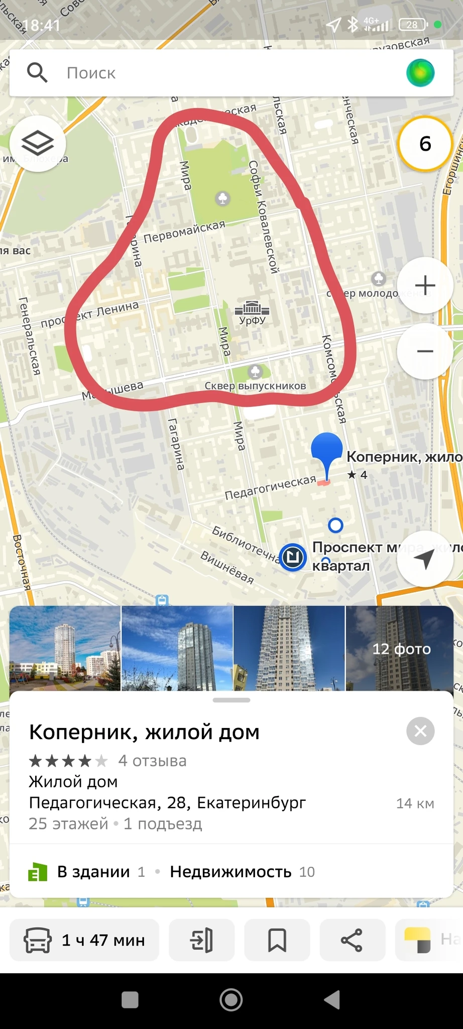 Университетский все же район УПИ - летом 10-12 минут пешком до главного корпуса УПИ. Жители часто ходят в Дендрарий, к УПИ. До набережной 40 минут летом. Зимой, понятно, подольше.