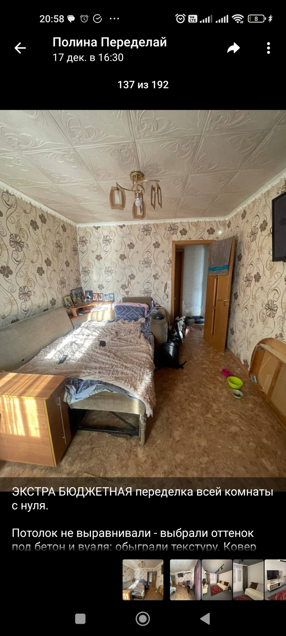 Мы купили похожую, ипотека дорогая, брали за наличку, очень на вашу похожа, я ревела первую неделю, еще и тараканник оказался, сначала тараканов травила, прошел месяц, сделали кухню, полностью, ничего от старой не осталось, и коридор, осталось две комнаты, там только потолки пока натянули. До этого жили в новостройке, где все было уже сделано. Я ревела прямо сильно первые даже две недели, потом поняла, что нужно направить силы в другое русло. Но увидев тараканов, поняла, что для меня это временное жилье, даже если тараканы больше не прийдут, не забуду как встала в первое утро, а у меня вес потолок в них