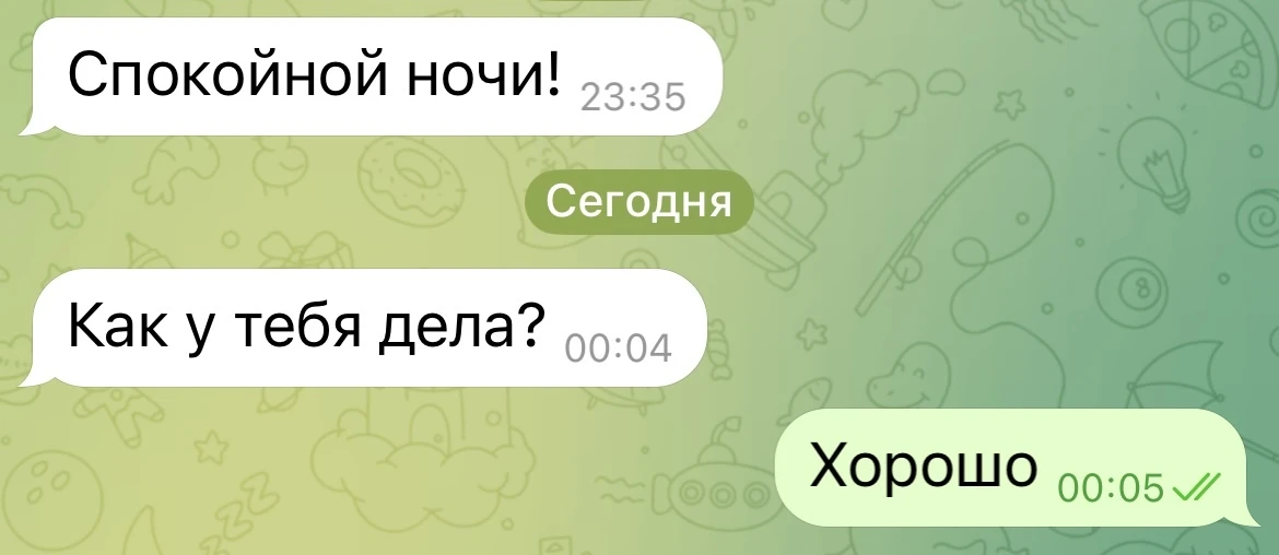 И зачем вы ему спокойной ночи написали, а потом ещё как дела?