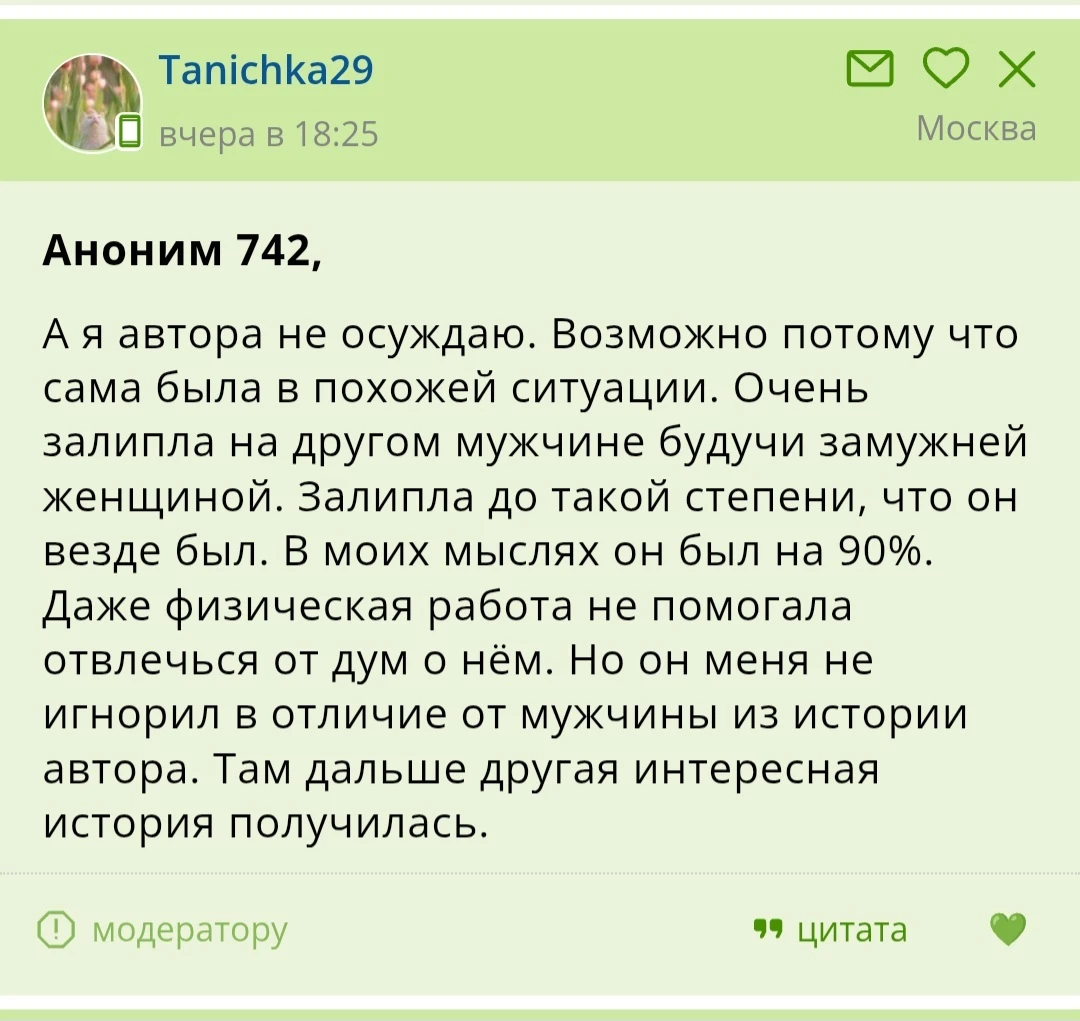 Аноним 692: Не по зубам вам свободные, классные мужчины, давитесь объедками молча, но вас же рвёт всем рассказать и получить подтверждение своим фантазиям. Вам будут кивать и про себя посмеиваться и сочувствовать