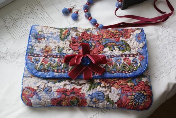 ну вот и я отчитываюсь. Сваляла сумочку. Фасон "подсмотрела" в одном известном сообществе ;) . На фото не очень видно, но вообще она получилась какая-то фольклорная, не знаю даже как охарактеризовать :)