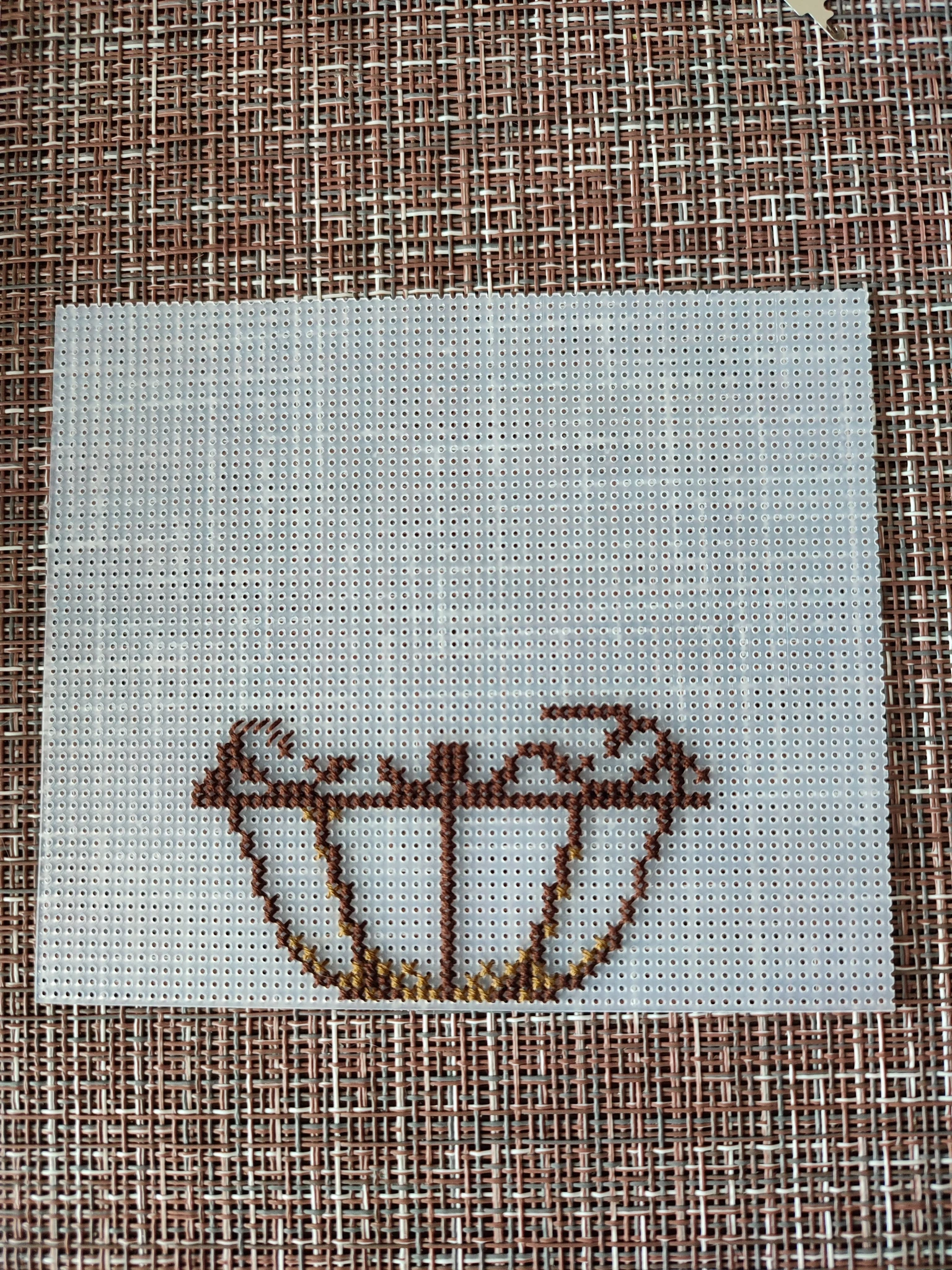 На сову я тоже смотрела, но она показалась сложнее. Кошку решила начать снизу, там меньше переходов, шью цвета по очереди небольшими кусочками. Т.е. один столбик условно это 2 стежка в ширину, каждый следующий столбик как бы наслаивается на предыдущий, чтобы не было границ перехода.