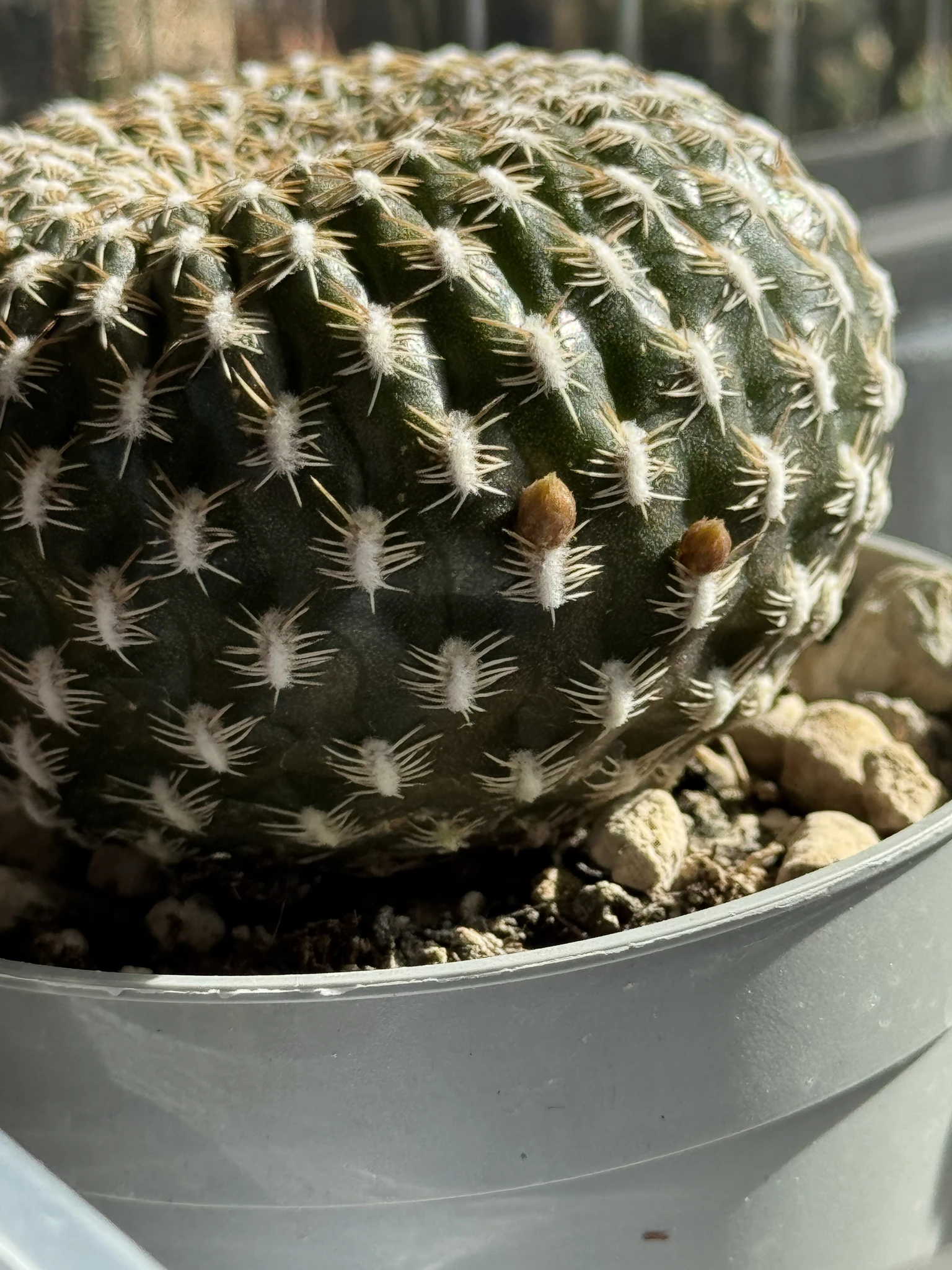 За это я и обожаю кактусы: они такие суровые снаружи и нежные внутри. Сулькоребуция Аренацея меня примирила с моей фобией пауков 😅 у нее иголочки в виде паучков, и из них бутоны с цветами лезут. Жду вот красоты очередной