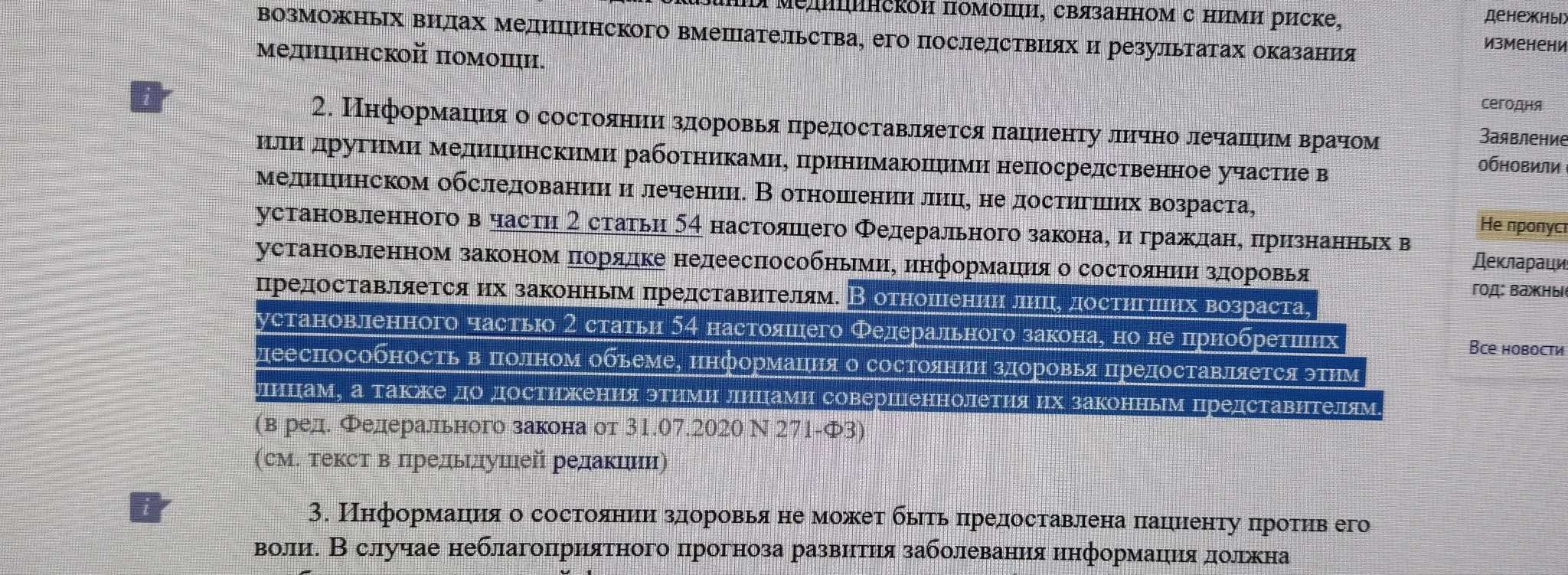 Ст. 22 ФЗ Об основах охраны здоровья граждан. С 1 августа 2020 года изменения действуют.