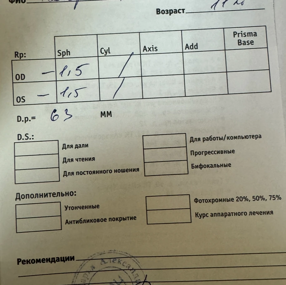 У ребёнка (11 лет) миопия -1,5. Дали рецепт на очки, очки купили.