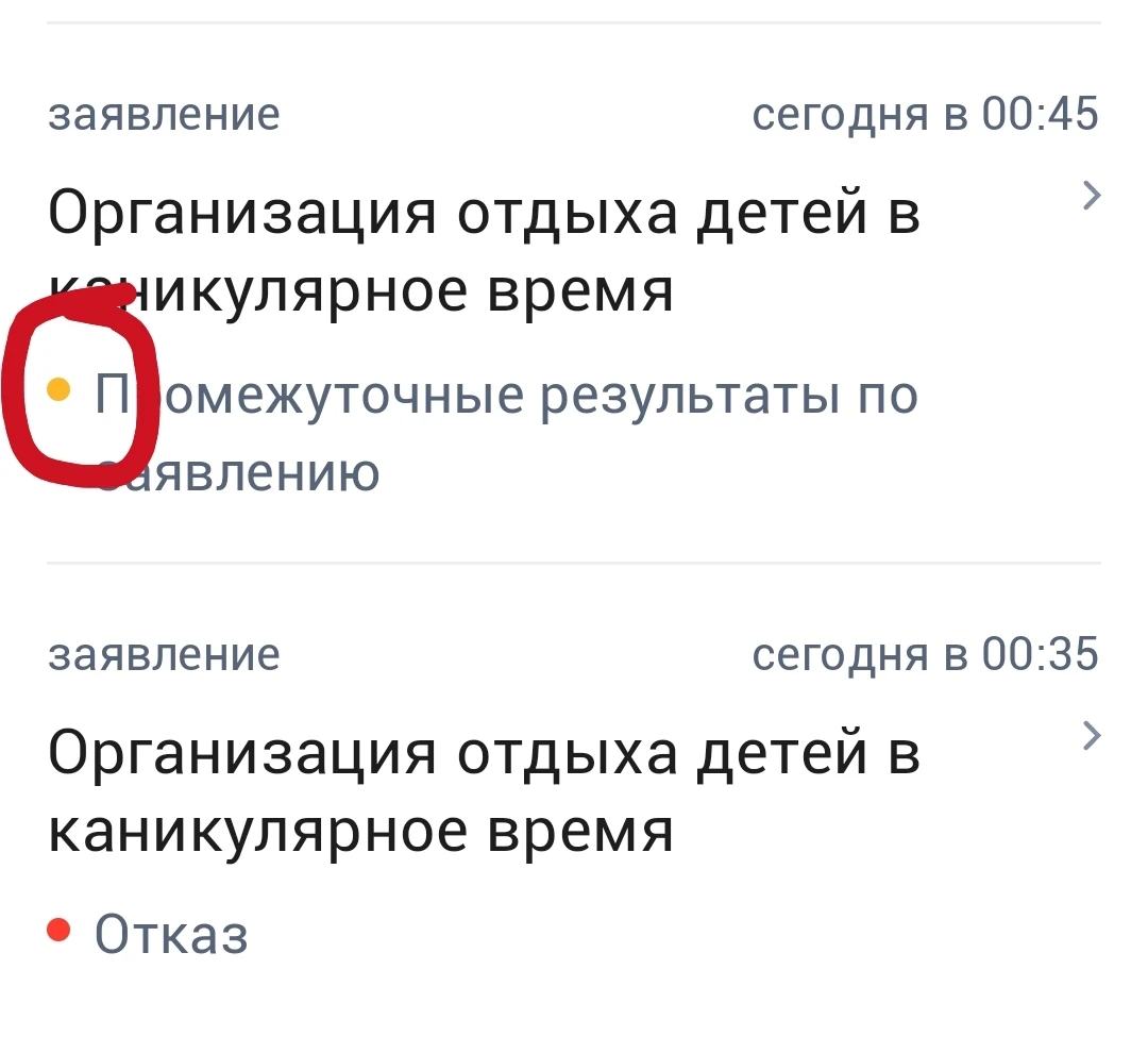 Ж/д район в 08.02 статус заявления обновился, появился Комментарий: Зарегистрировано заявление на ребенка ....