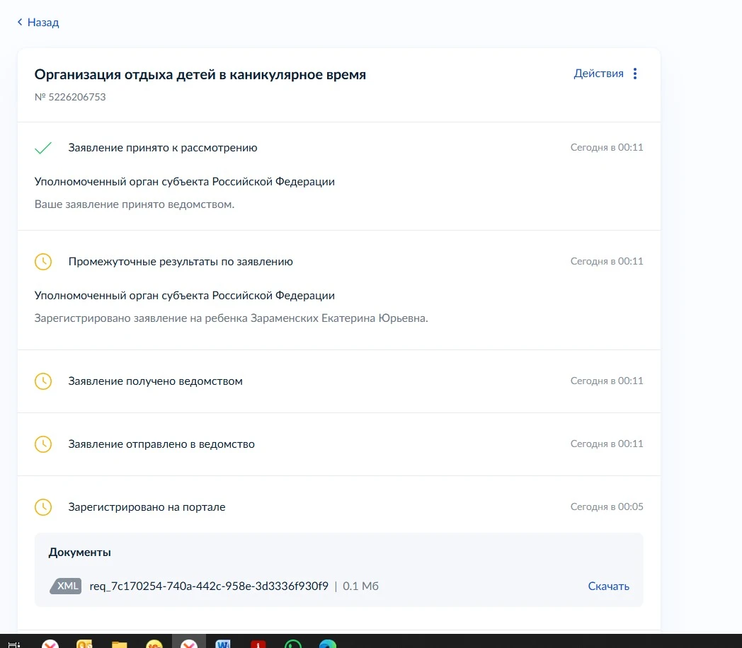 Подавала из черновика на двоих детей. Сначало все зависло. В итоге зарегано на портале в 00:02, получено в ведомстве в 00:08.