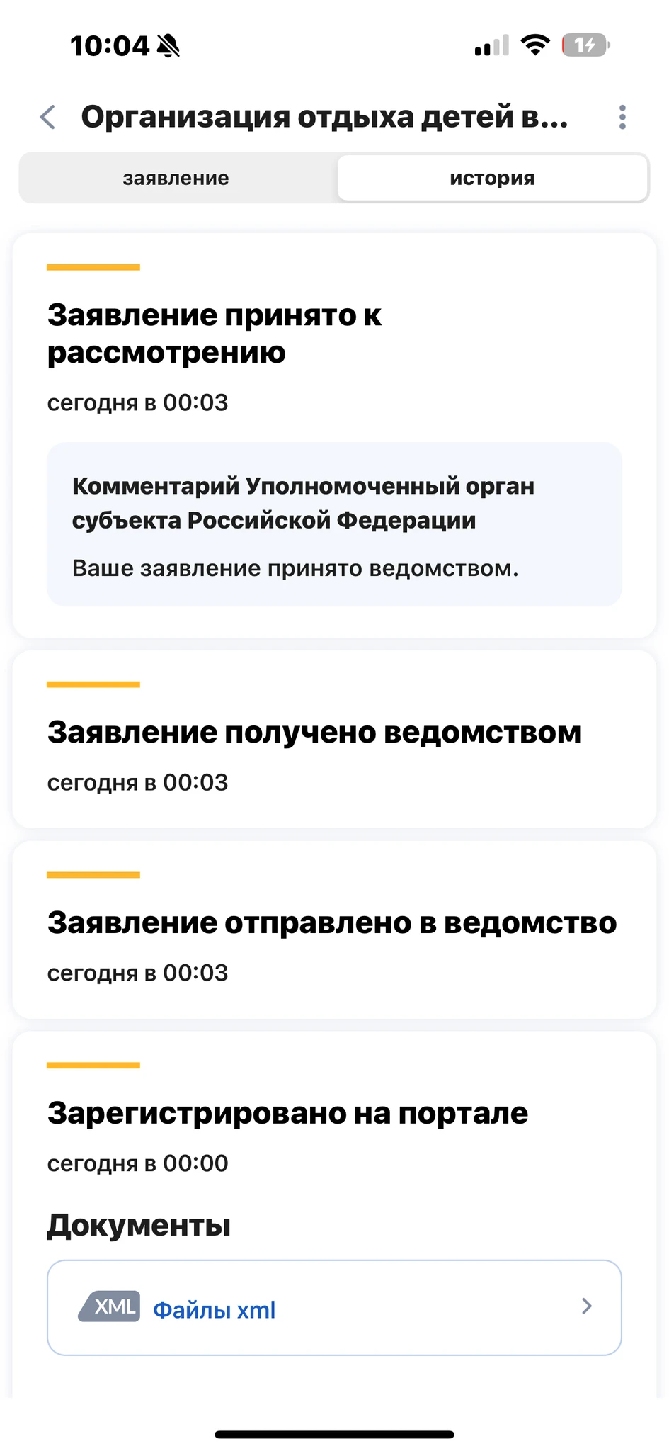Аналогично, подали в 00:00, а ушло в ведомство в 01:04.