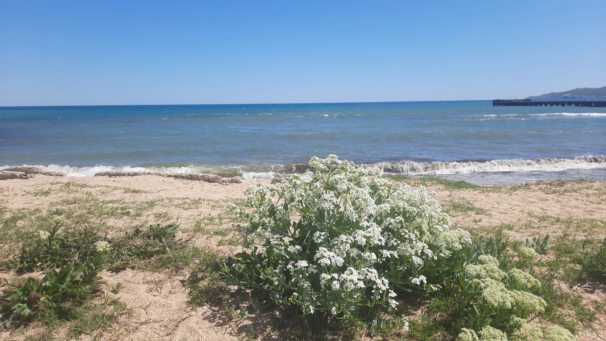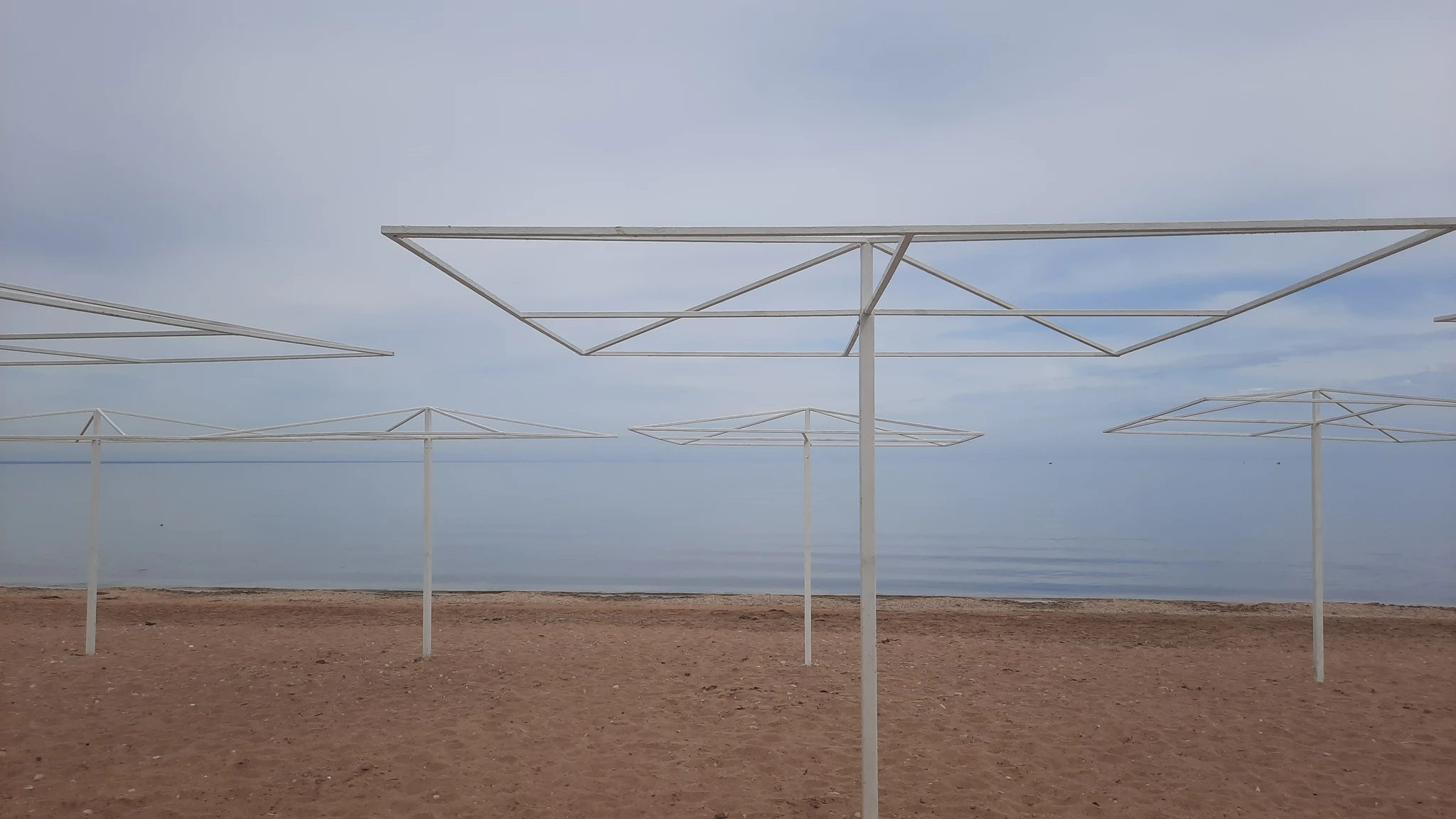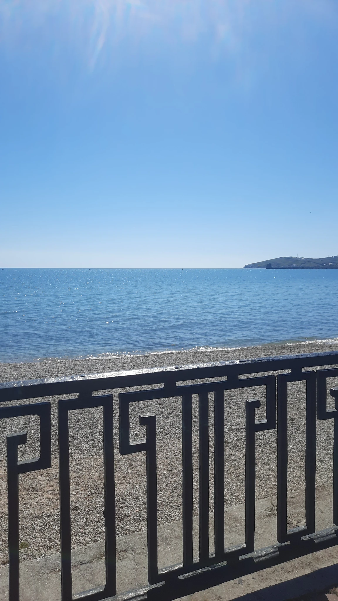 Сегодня облачно и полный штиль на море , и море сливается с небом. И море и небо - бледно-голубого цвета.