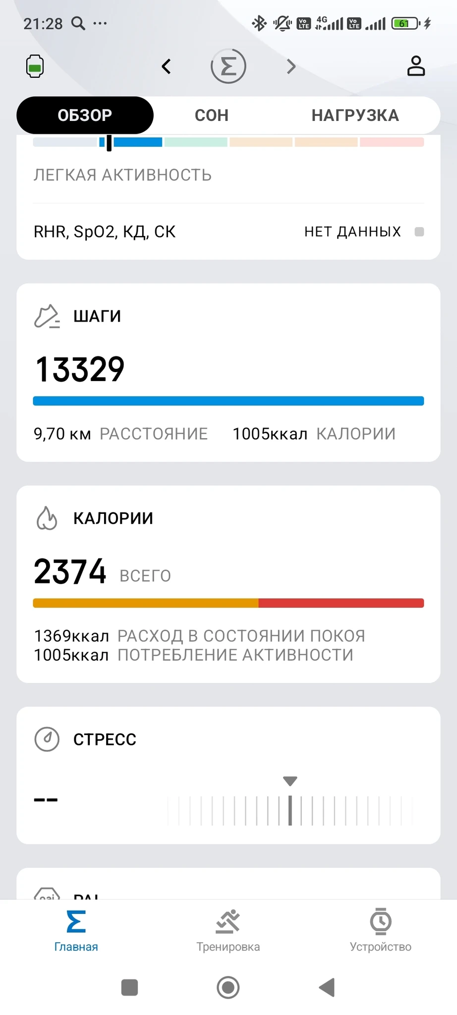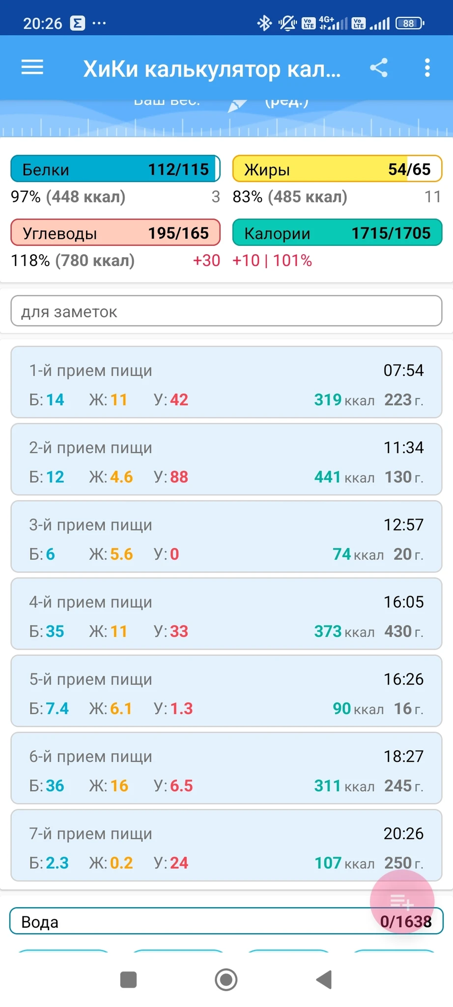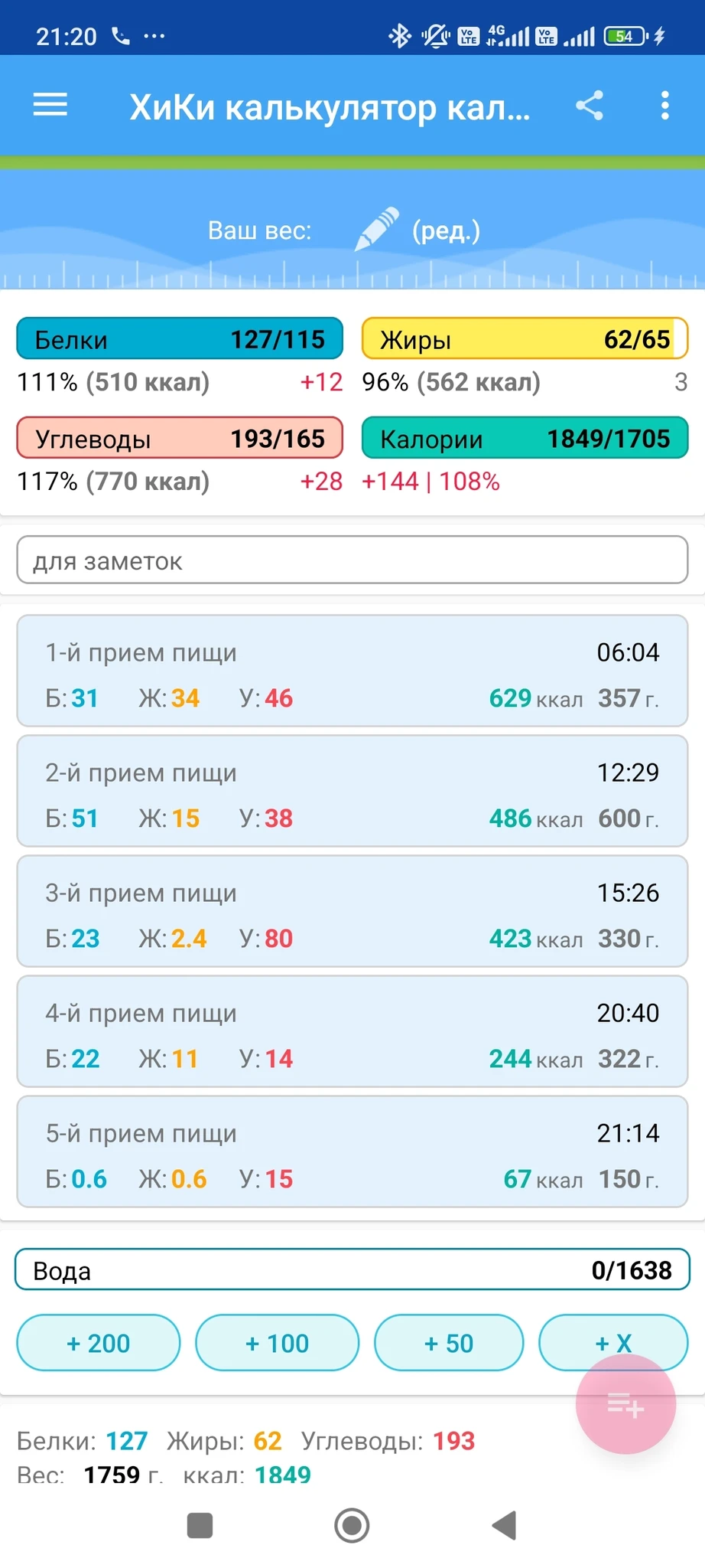 Калории чуть больше, но и расход сегодня