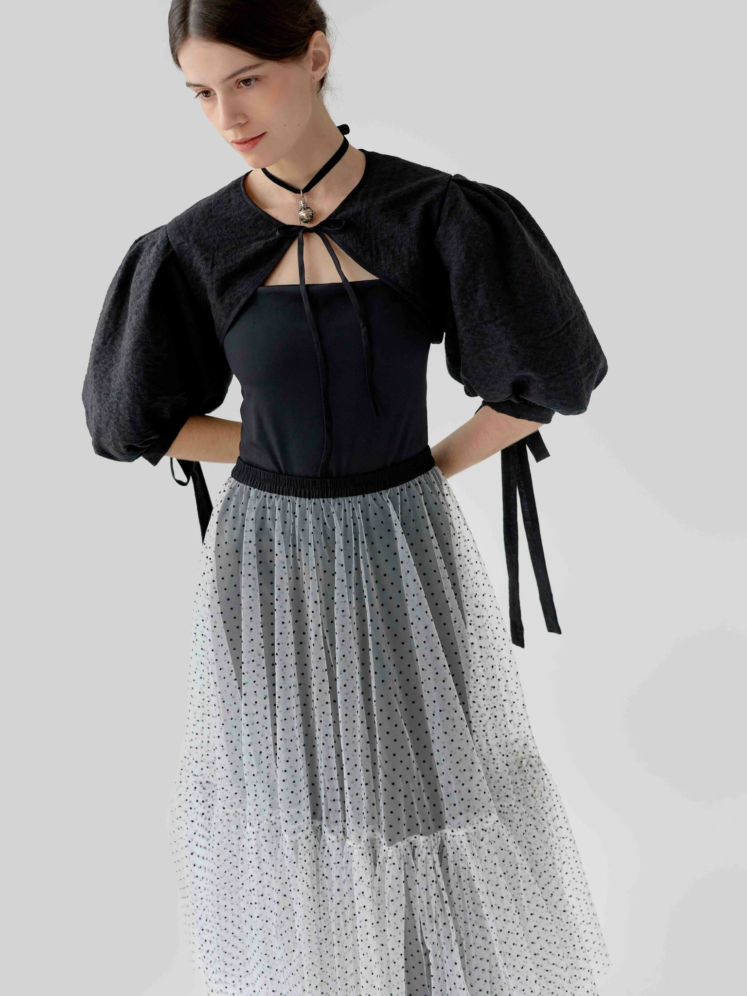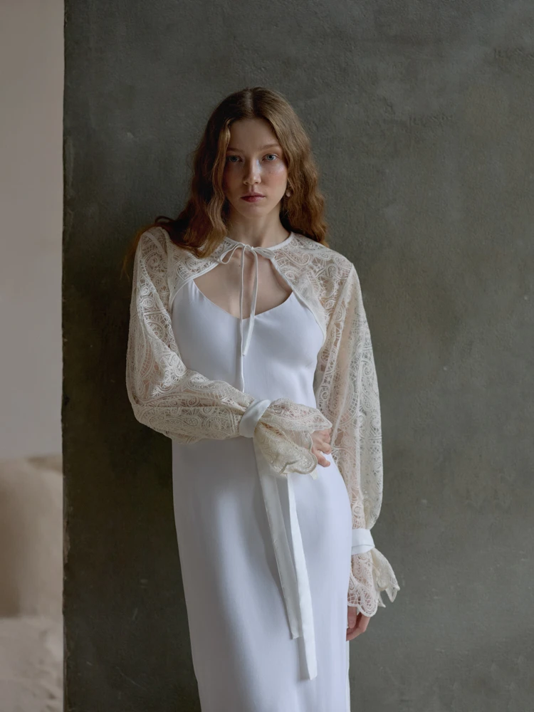 К такому платью можно взять отдельные рукава.. можно манишку, если руки не требуют прикрытия, но хочется закрыть декольте… Но это определенный стиль, его надо уметь держать…