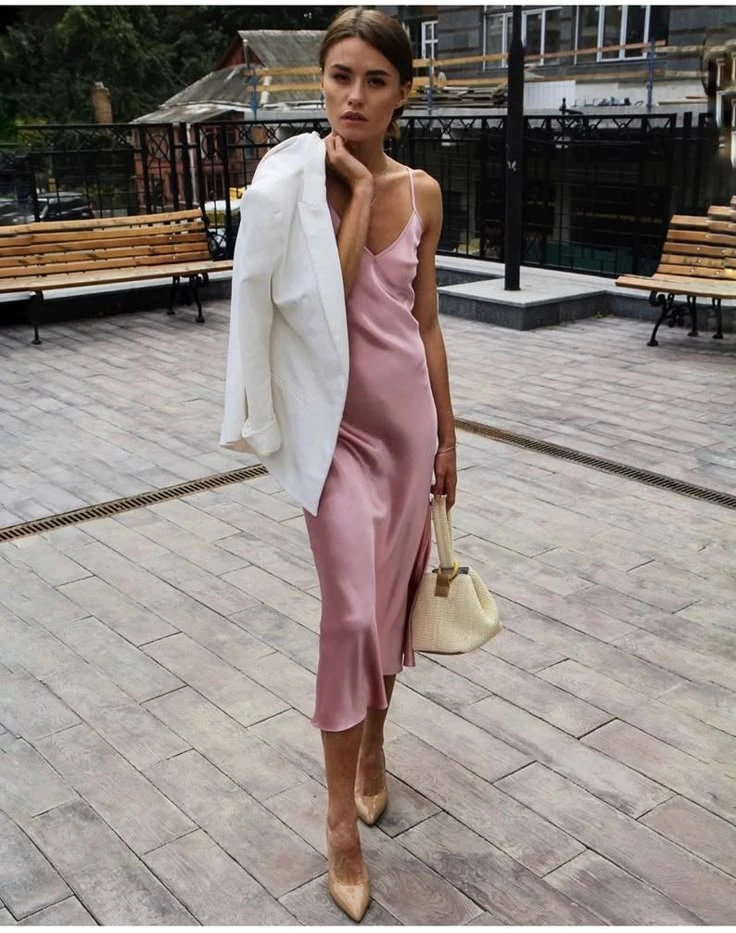 Именно такого не нашла, но на прохладную летнюю погоду мне кажется светлый жакет и бежевые лодочки будет норм. На фото просто примеры с верхом.